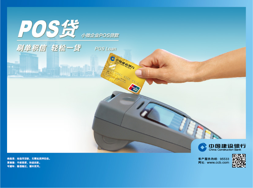“POS贷”业务是指建设银行根据小微企业特约商户银行卡收单交易情况,向其发放的用于短期生产经营周转的可循环的人民币信用贷款业务。