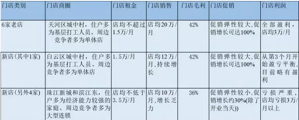 1、门店月度利润约6万元,老店全部盈利,4家新店亏损严重,具体经营情况如下表: