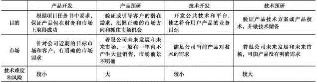 华为公司将研发体系的项目重点分为产品预研、产品开发、技术预研、技术开发共四大类: