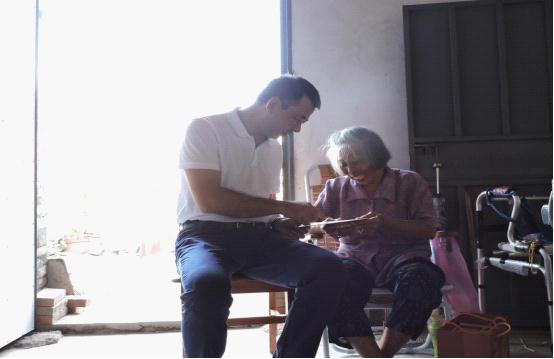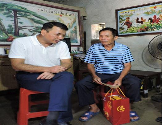 图为:市经信局党组书记、局长雷双富(左一)来到贫困户殷进兰和郑亦太家中并送上慰问品和慰问金!