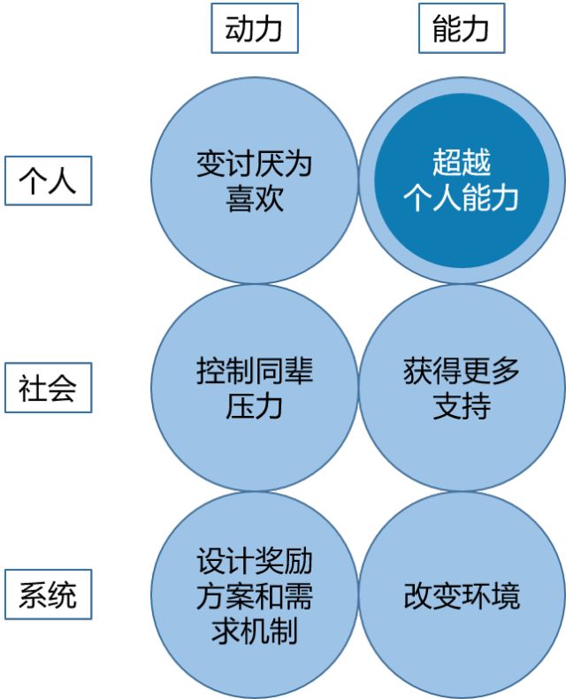人们经常思考:“这样做是否值得?”“我能做到吗?”其实,就是在思考有无动力做、有无能力做。也就是说,影响力=动力X能力。我们把能力和动力进一步细分为个人、社会和系统三种来源,即为影响力来源模型。