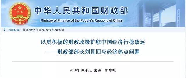 新华社刊发的标题为《以更积极的财政政策护航中国经济行稳致远——财政部部长刘昆回应经济热点问题》,可以看出,是刘部长出来给经济提气的。