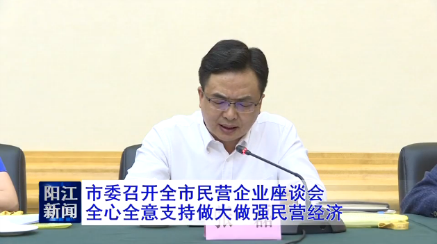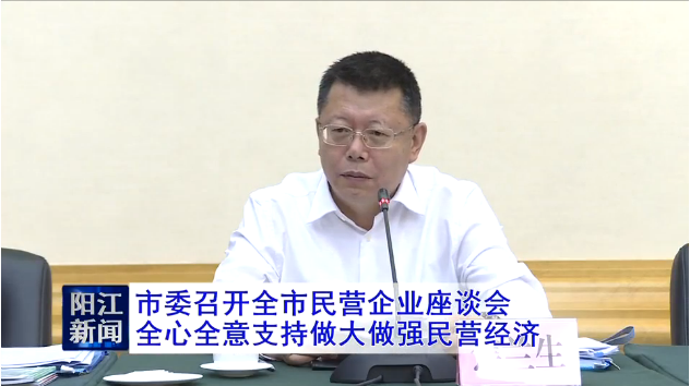 16日上午,市委召开全市民营企业座谈会,认真学习贯彻习近平总书记在民营企业座谈会上的重要讲话精神和全省民营企业座谈会精神,听取民营企业家对发展民营经济的意见建议,研究做大做强阳江民营经济。
