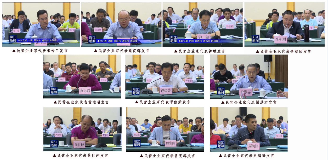 市委书记焦兰生出席座谈会并讲话,市长温湛滨主持座谈会,市政协主席丘志勇出席座谈会。副市长张磊通报了我市民营经济发展的有关情况,张传卫、戴促辉、钟敏、李积回、黄运昭、谭俭荣、梁洪志、简世坤、曾宪辉、周鸿锋等10位民营企业家代表作了发言,畅谈学习贯彻习近平总书记重要讲话精神的体会和感受,就支持民营企业发展提出意见和建议。