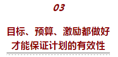 目标、预算、激励这三样东西要同时给,你的计划管理才做得到。我最怕你们做一件事情,就是年底把计划、目标都做好了,激励不公布,第二年再给激励,其实你就牺牲掉一个季度了。