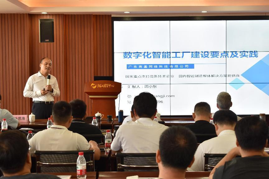 广东商基网络科技有限公司项目总监周小东就《数字化智能工厂建设要点及实践》进行专题介绍,周老师围绕数字化智能工厂建设,就数字化智能工厂的核心特征、建设要点、实施路径和实践经验进行了详细的介绍,其生动简明的授课风格给与会企业代表留下深刻的印象。