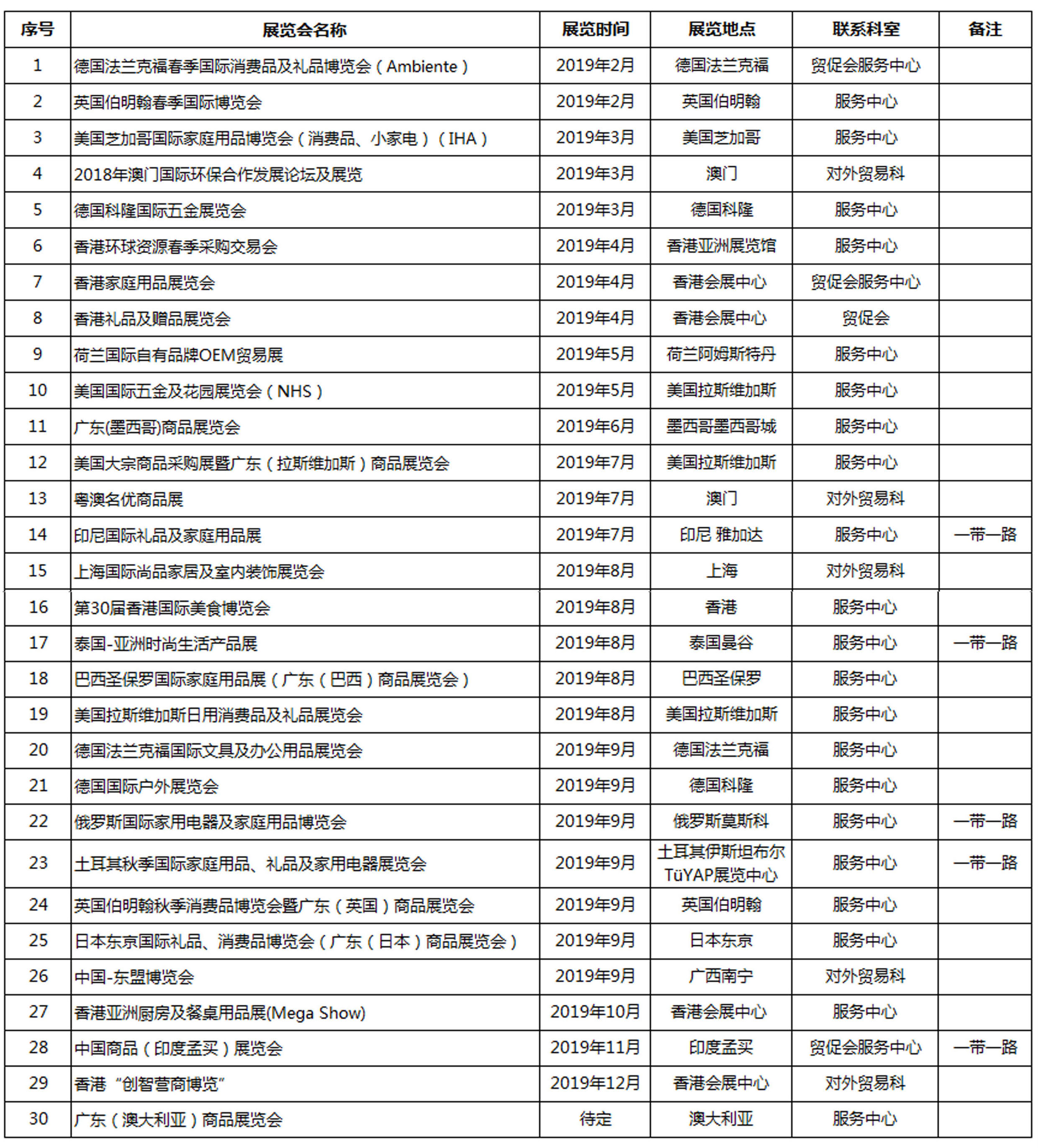 阳江市商务局关于2019年拟组织企业参加的重点展会活动的通知