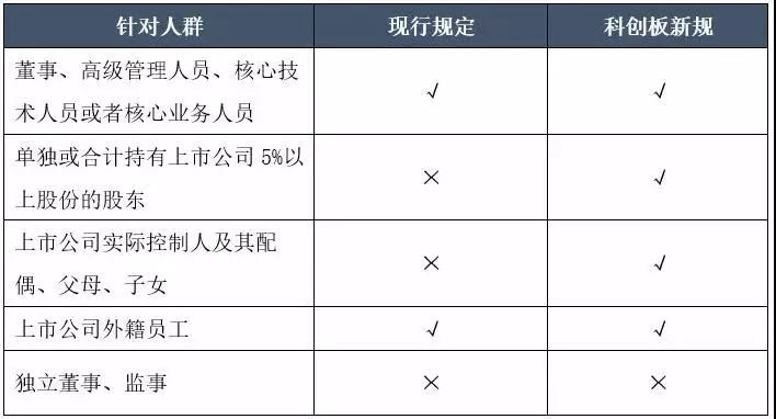 对比《上市公司股权激励管理办法》,科创板扩大了可以成为激励对象的人员范围,允许单独或合计持有上市公司5%以上股份的股东、上市公司实际控制人及其配偶、父母、子女以及上市公司外籍员工,成为激励对象。但前提是需要在上市公司担任董事、高级管理人员、核心技术人员或者核心业务人员。新规更加突出了激励的本质,针对以上人员,科创公司只要能说明激励的必要性、合理性即可,有利于不拘一格的吸引和激励核心人才。