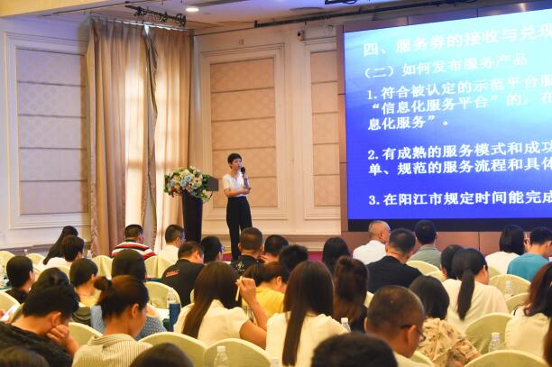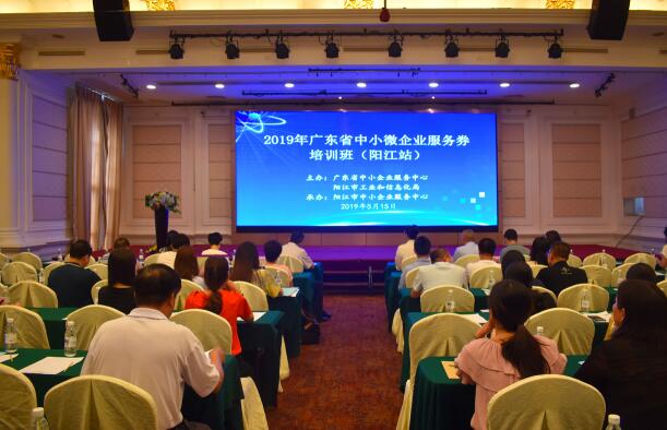 为做好2019年广东省中小微企业服务劵在我市的发行工作,5月15日下午,广东省中小企业服务中心、阳江市工业和信息化局联合在阳江碧桂园凤凰城酒店国际会议厅举办2019年广东省中小微企业服务劵培训班。