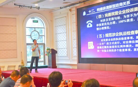 省工业和信息化厅郭志恒科长首先对国家、省出台的促进民营经济高质量发展、降低制造业企业成本、支持实体经济发展的若干政策措施进行了解读。
