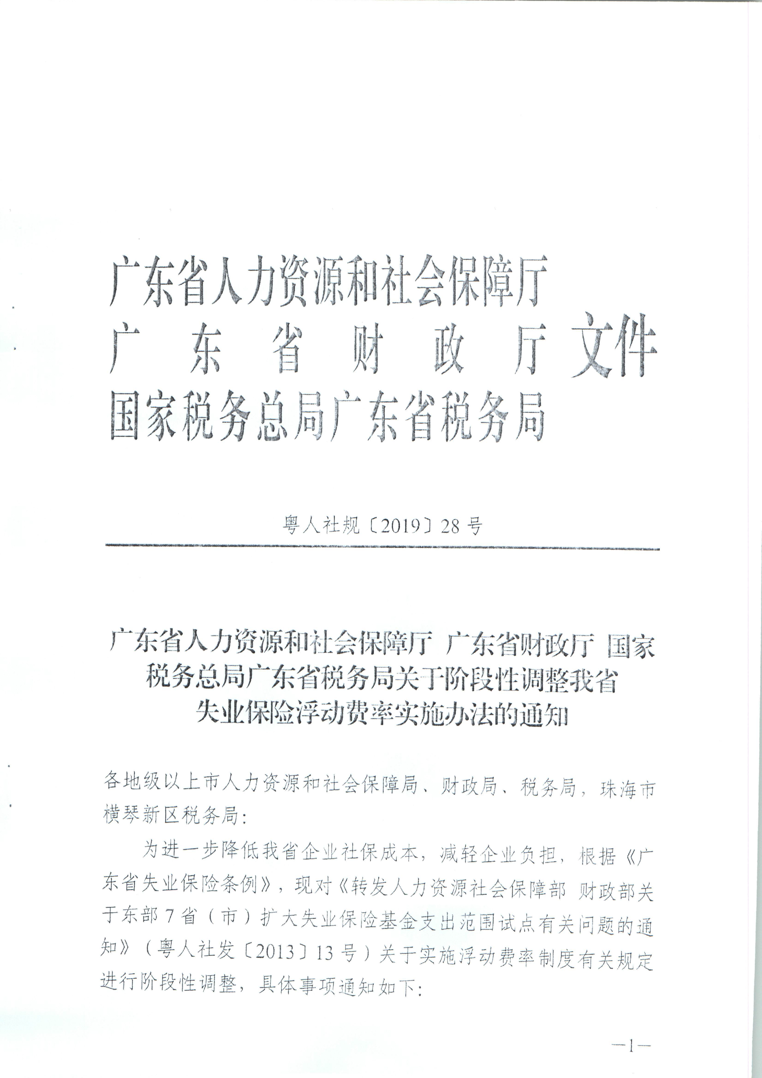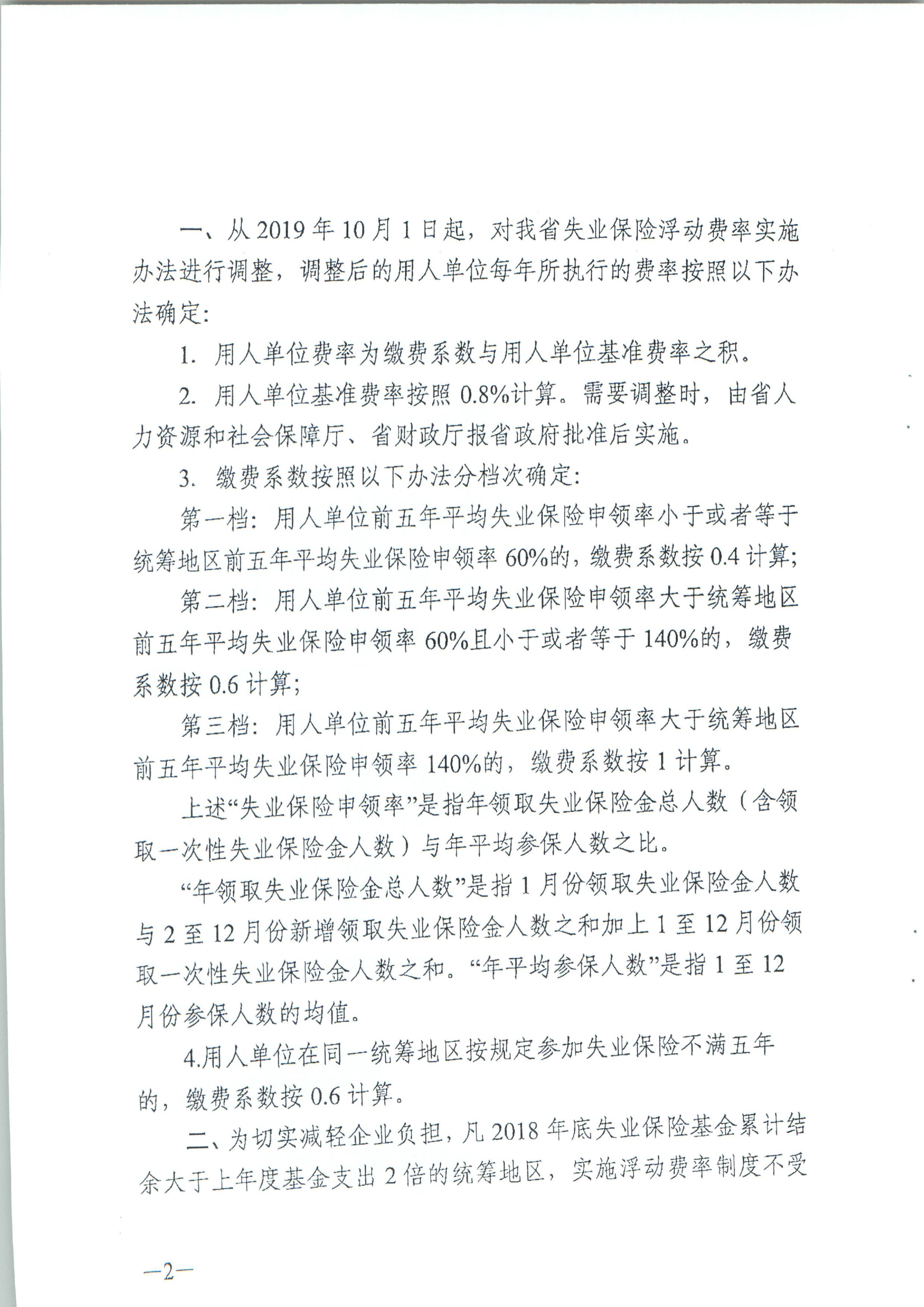 阶段性调整我省失业保险浮动费率实施办法的通知
