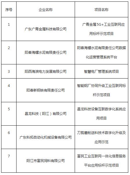 阳江市2020年省级促进经济高质量发展专项资金工业互联网标杆示范项目