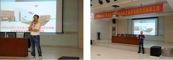 参观完后车间后,在坚士制锁会议室交流座谈会上,坚士制锁区新本副总经理、普乐美汤彩成副总经理和企业家精英代表展开交流,分享企业成功的点点滴滴与心得体会。