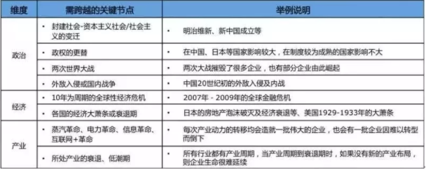 表:百年企业所需跨越的时间节点