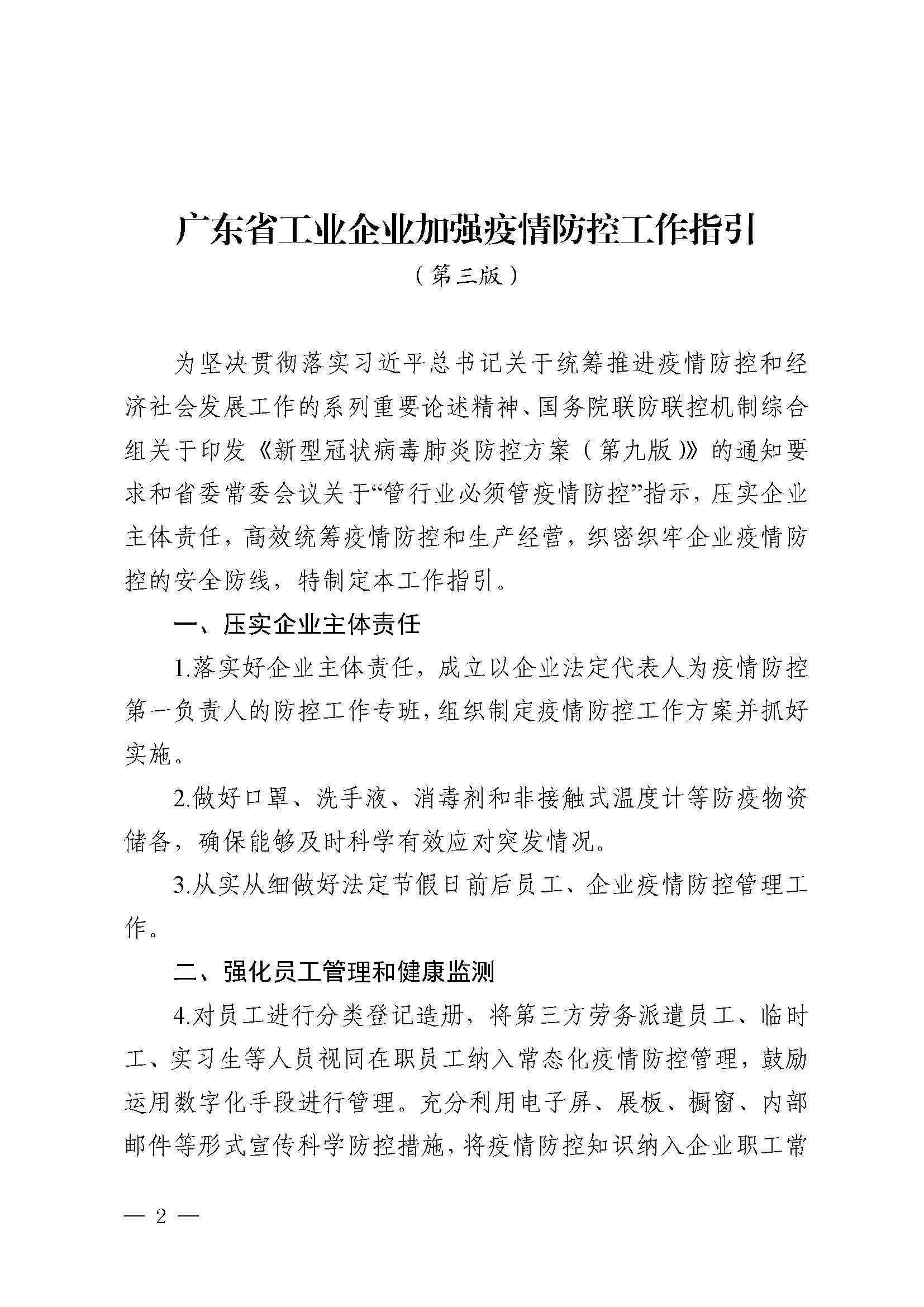 广东省工业和信息化厅关于印发《广东省工业企业加强疫情防控工作指引(第三版)》的通知