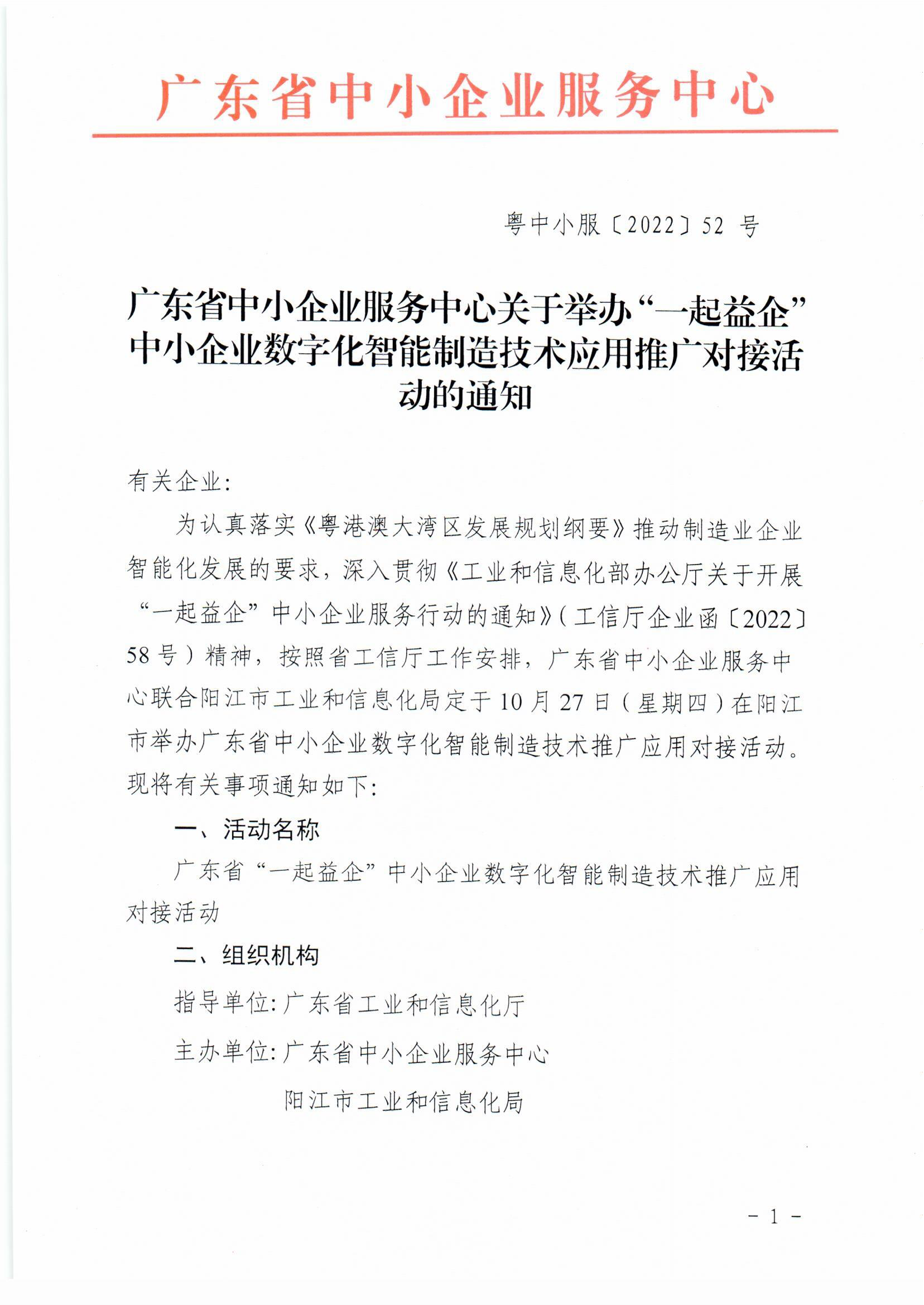 关于举办广东省中小企业数字化智能制造技术应用推广对接活动的通知