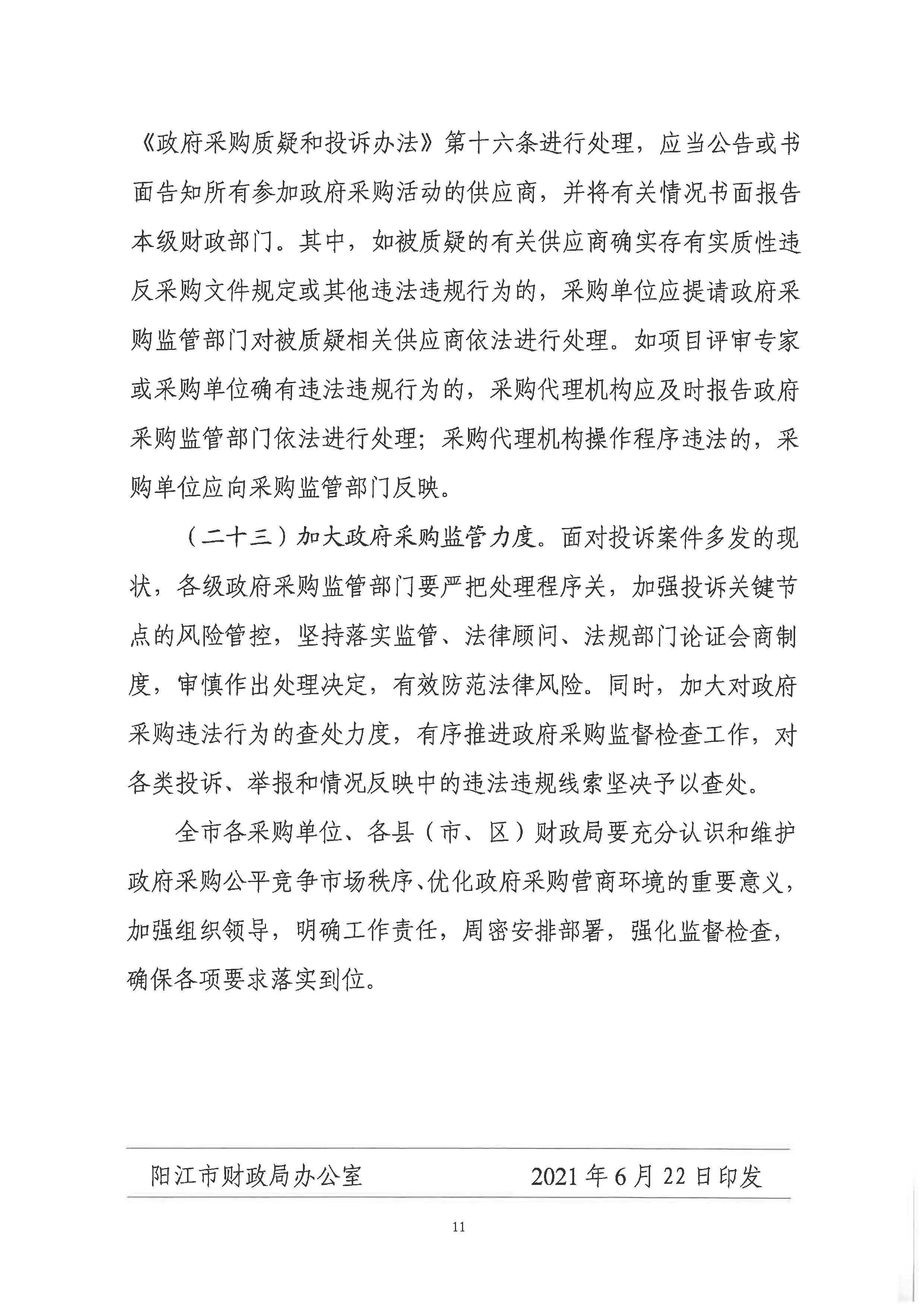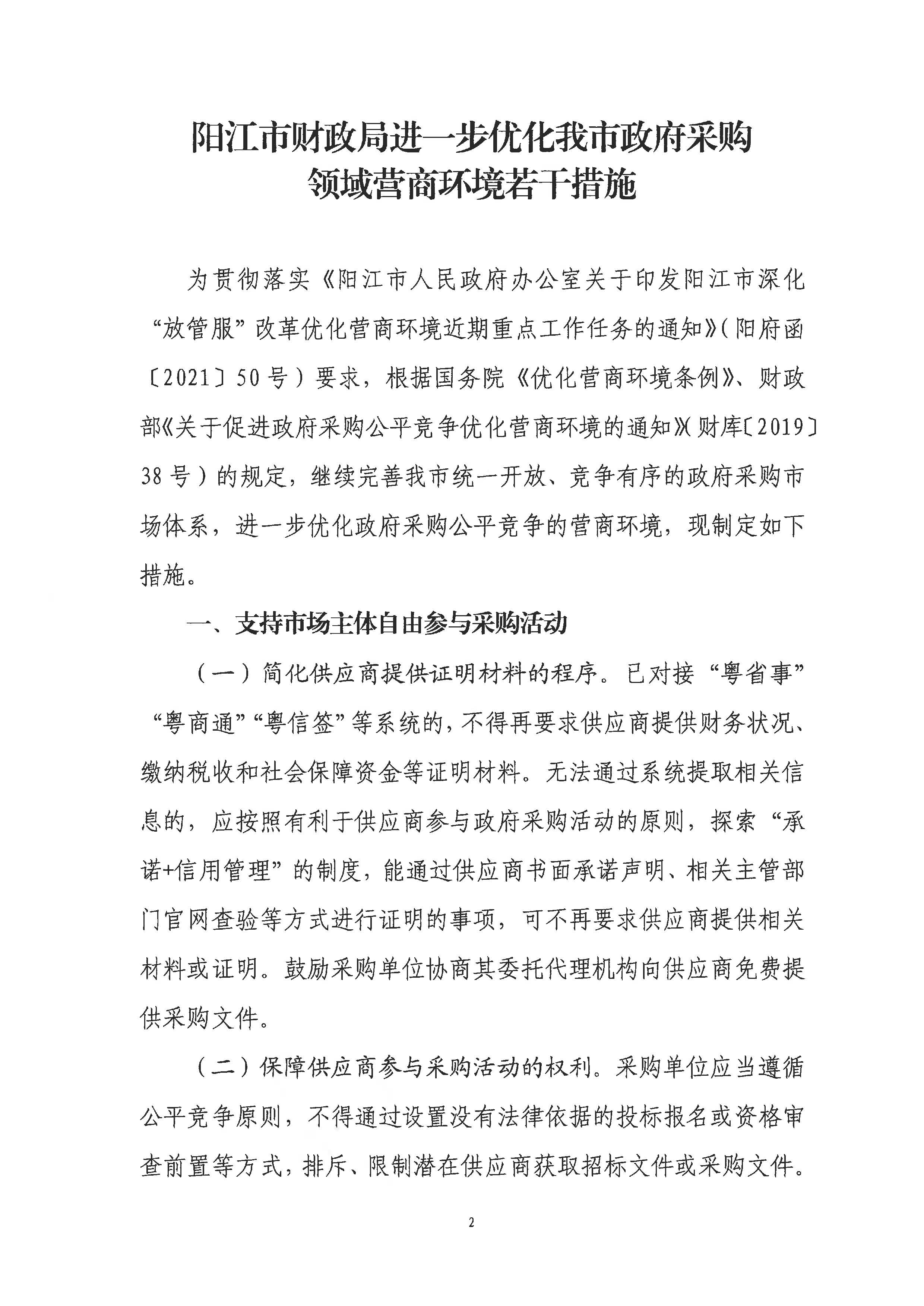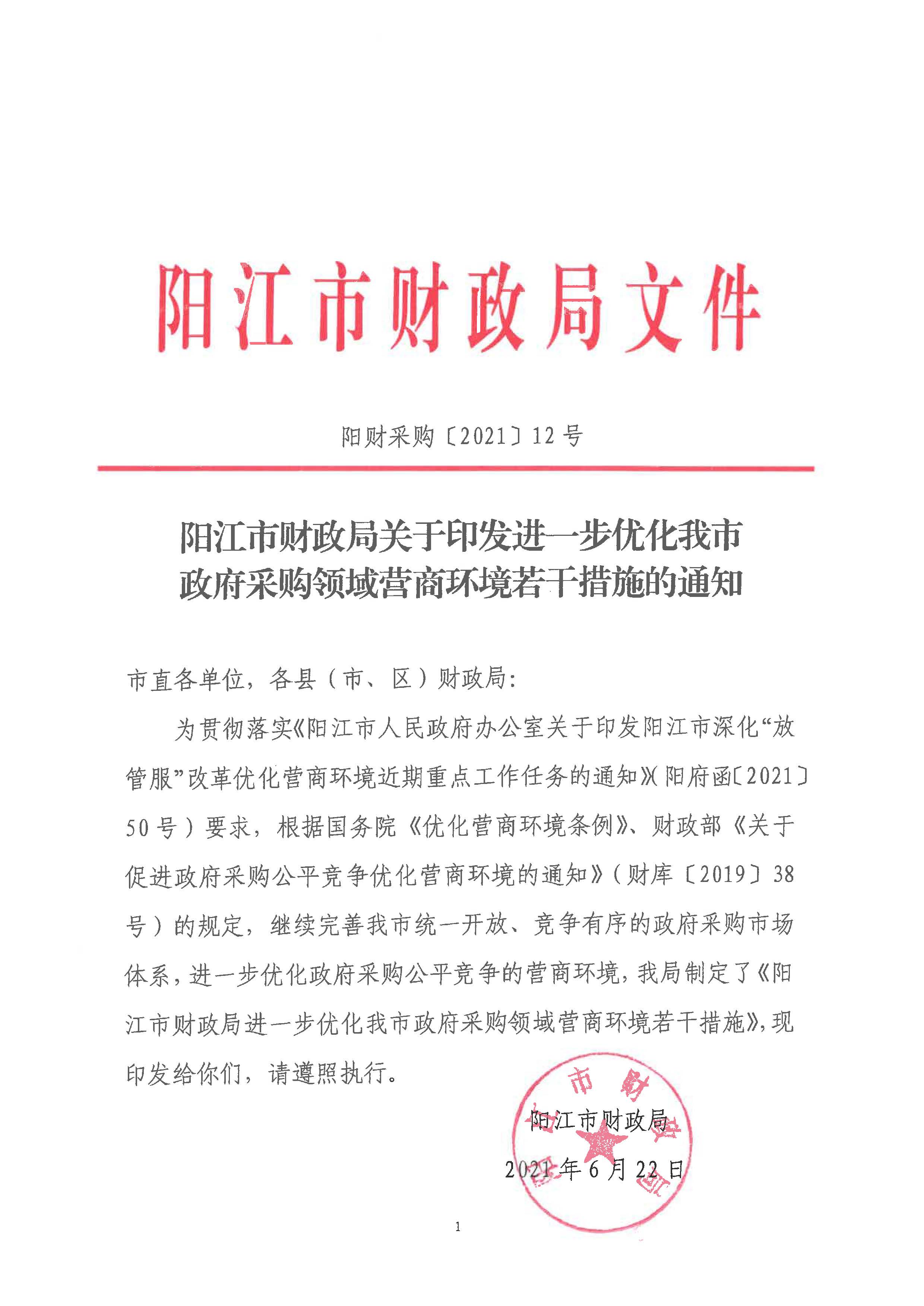 阳江市财政局关于印发进一步优化我市政府采购领域营商环境若干措施的通知)