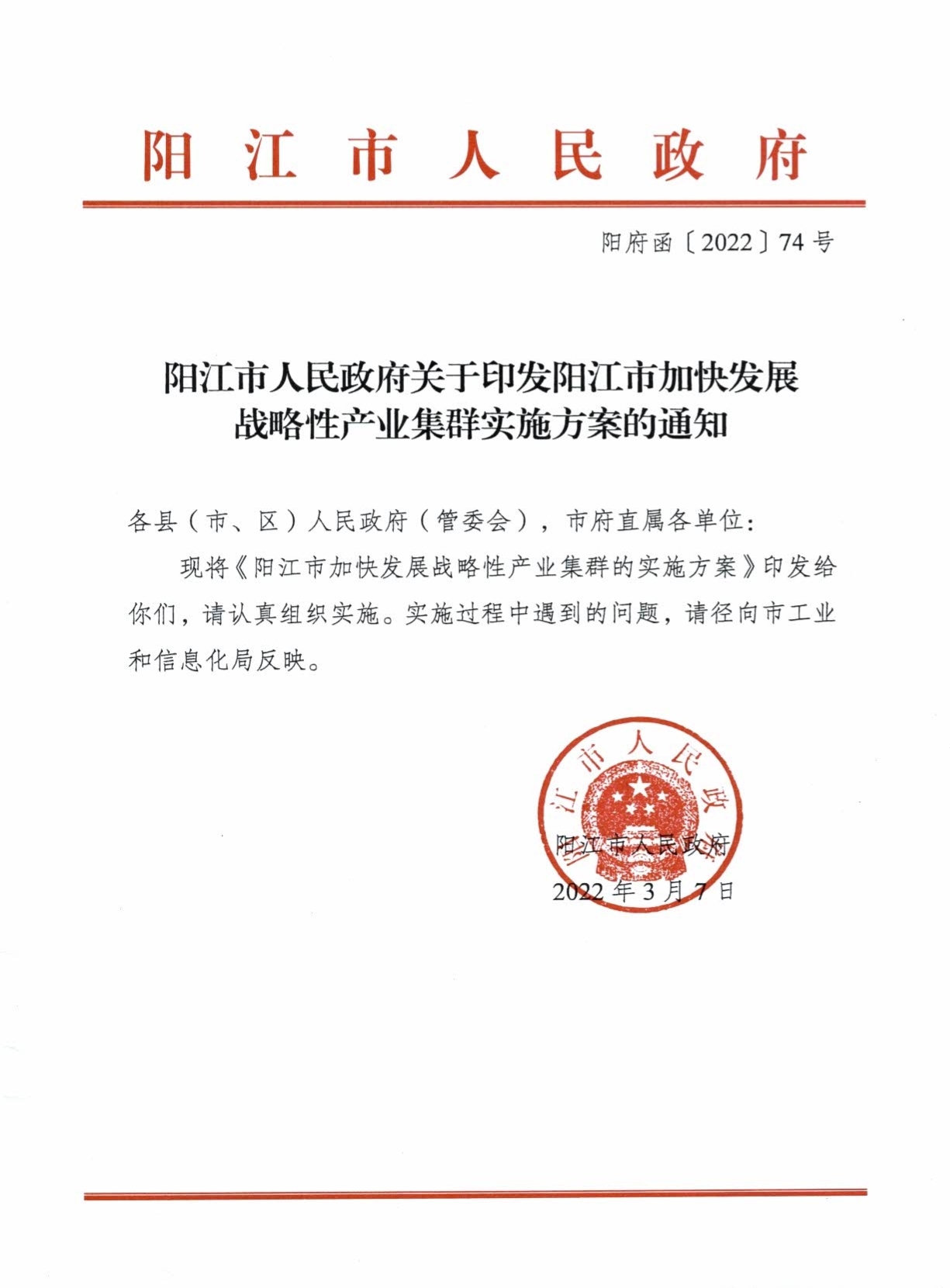 阳府函〔2022〕74号阳江市人民政府关于印发阳江市加快发展战略性产业集群实施方案的通知(正文).pdf