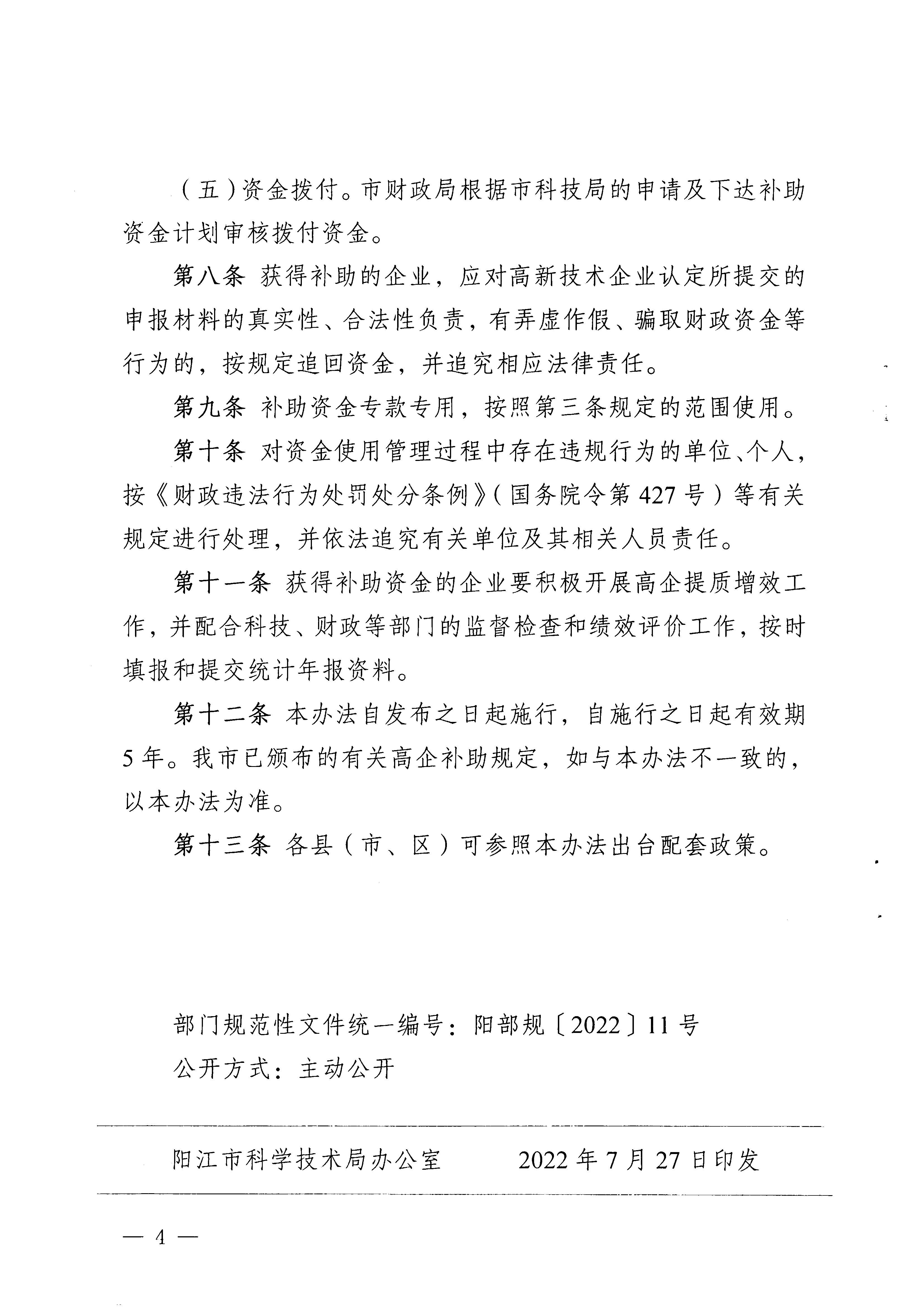 关于印发《阳江市科学技术局阳江市财政局关于高新技术企业发展专项资金管理办法》的通知